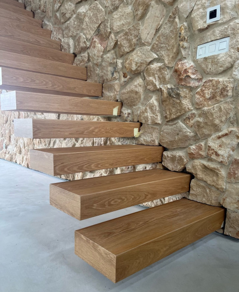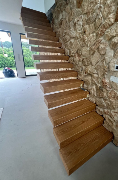Ukázka práce podlahářů z Bukoma - vetknuté schody s vinylovou podlahou. Použitá vinylová podlaha značky Floorify. Technicky náročné řešení, schodnice jsou obaleny vinylovou podlahou s ohyby.