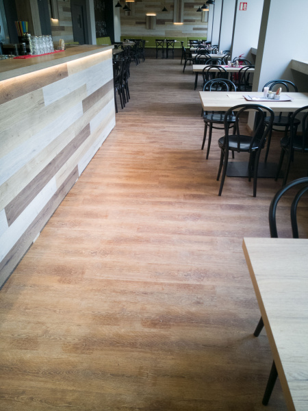 V tejto časti galérie predstavujeme realizácie vinylových podláh BUKOMA® v komerčných priestoroch, ako sú reštaurácie, hotely, penzióny a ďalšie verejné interiéry. Ide o priestory s vysokou frekvenciou pohybu, kde sa kladú zvýšené nároky na odolnosť, bezpečnosť a jednoduchú údržbu.