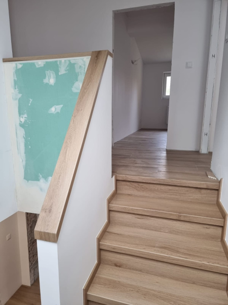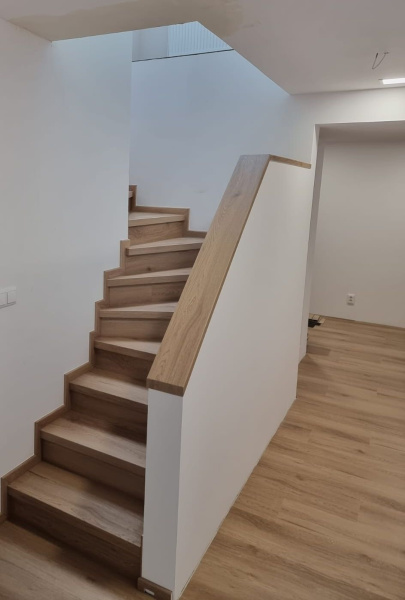 Realizace proběhla v obci Radim u Kolína, kde jsme dbali na každý detail – od přesného formátování jednotlivých dílů až po perfektní sladění dekoru. Výsledkem je schodiště, které nejen skvěle vypadá, ale také vydrží roky každodenního provozu.