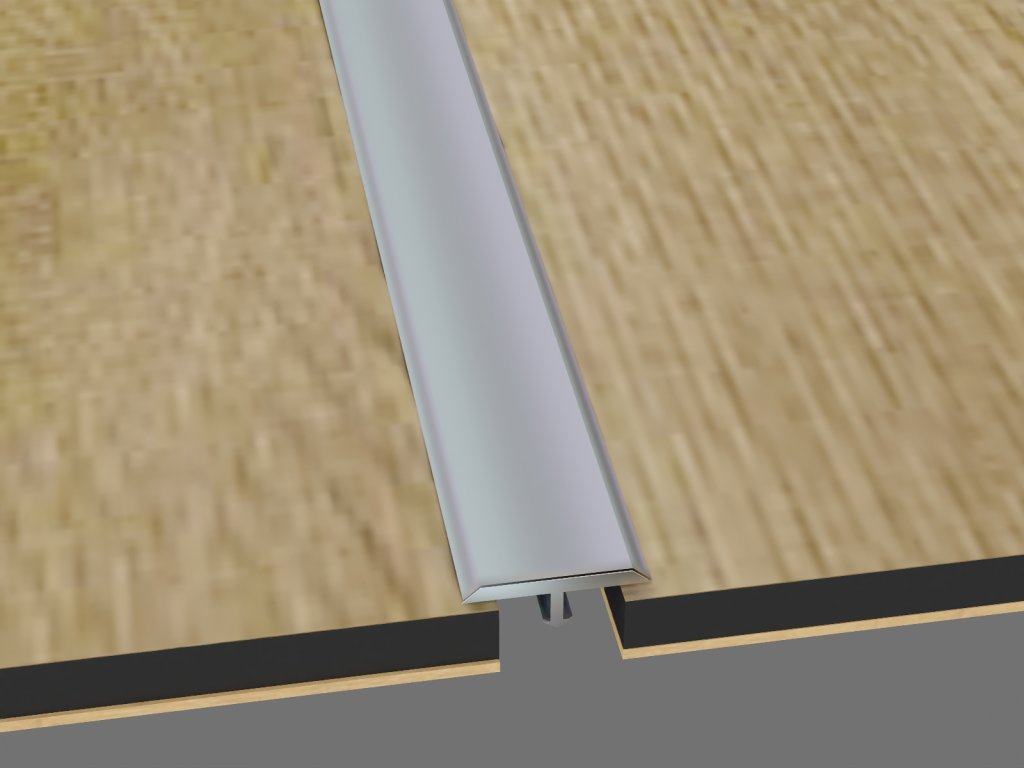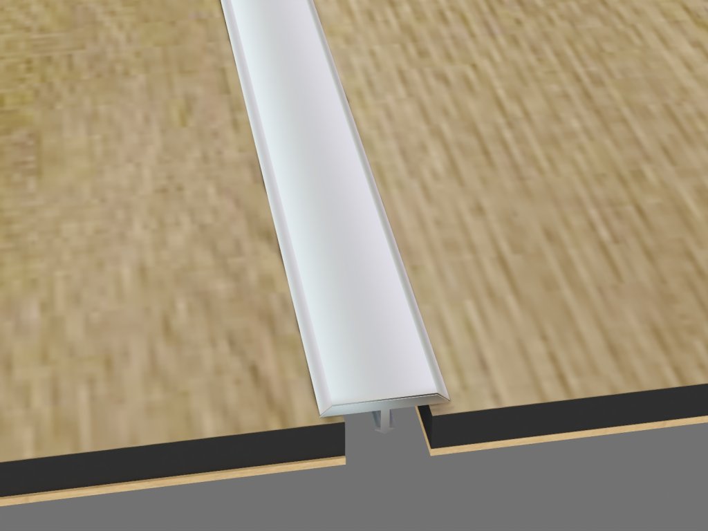 Přechodový T profil vhodný pro překrytí spár umožňuje plynulý přechod mezi různými podlahovými materiály, bez lepidla, lze jej snadno ohýbat pomocí speciálního nářadí až do průměru 40 cm.