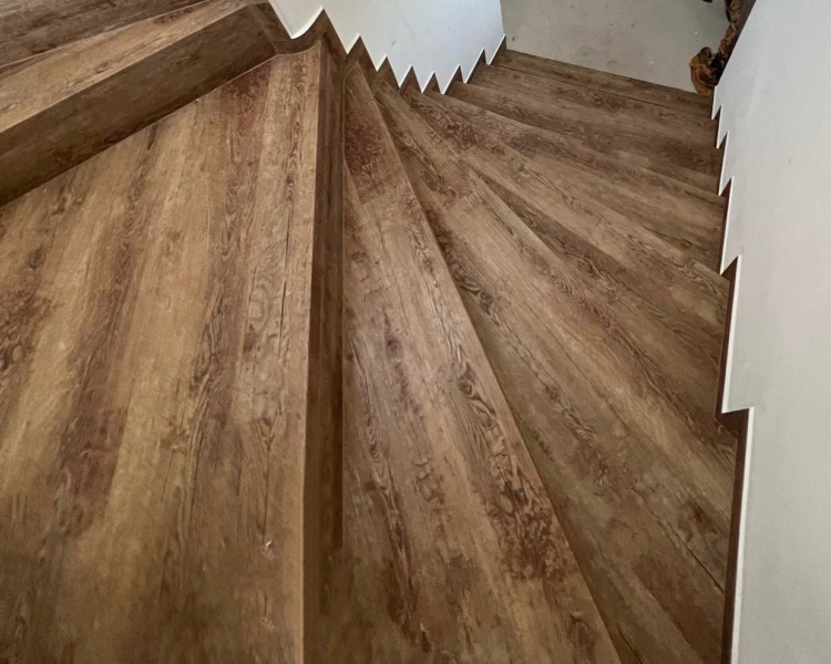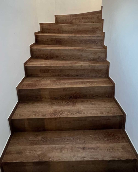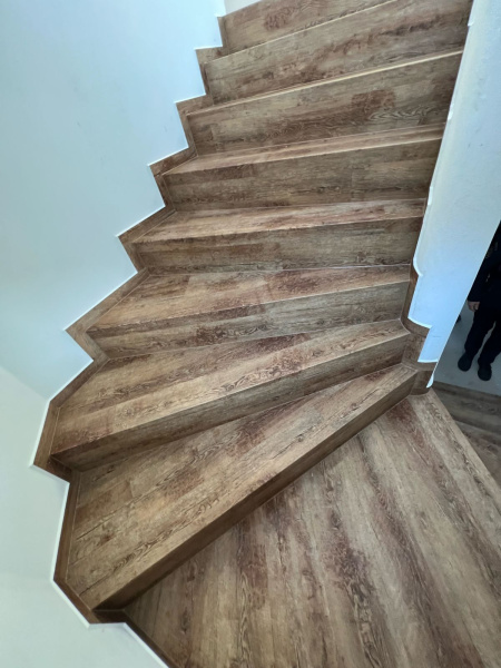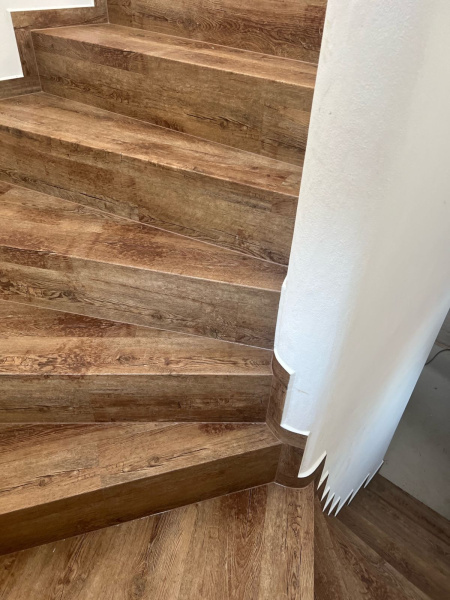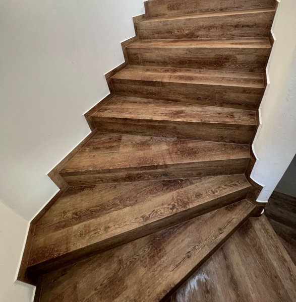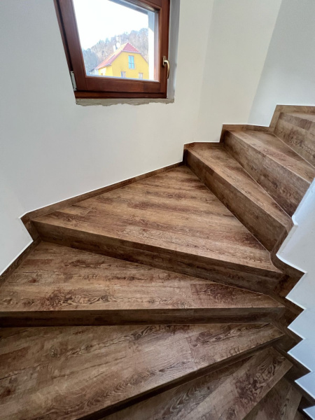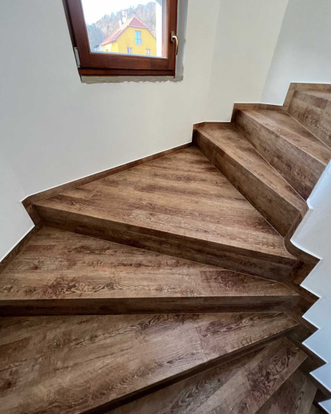 Ukázka práce podlahářů BUKOMA, obklad schodiště vinylovou podlahou