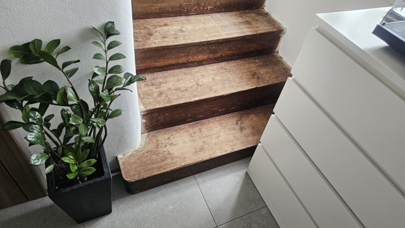 Původní schodiště bylo tvořeno starými dřevěnými schody, které sice měly svou atmosféru, ale již neodpovídaly současným nárokům na vzhled a funkčnost. Naši podlaháři z Bukoma se pustili do náročného úkolu, jak tento prostor oživit, a zvolili vinyl BUKOMA PREMIUM U-CLICK dekor Dub Natur LIght, který nabízí vynikající kombinaci přírodního vzhledu a praktických výhod vinylového povrchu. Tato podlaha je nejen krásná, ale také snadná na údržbu a ideální pro schodiště, která jsou často vystavena každodennímu zatížení.
