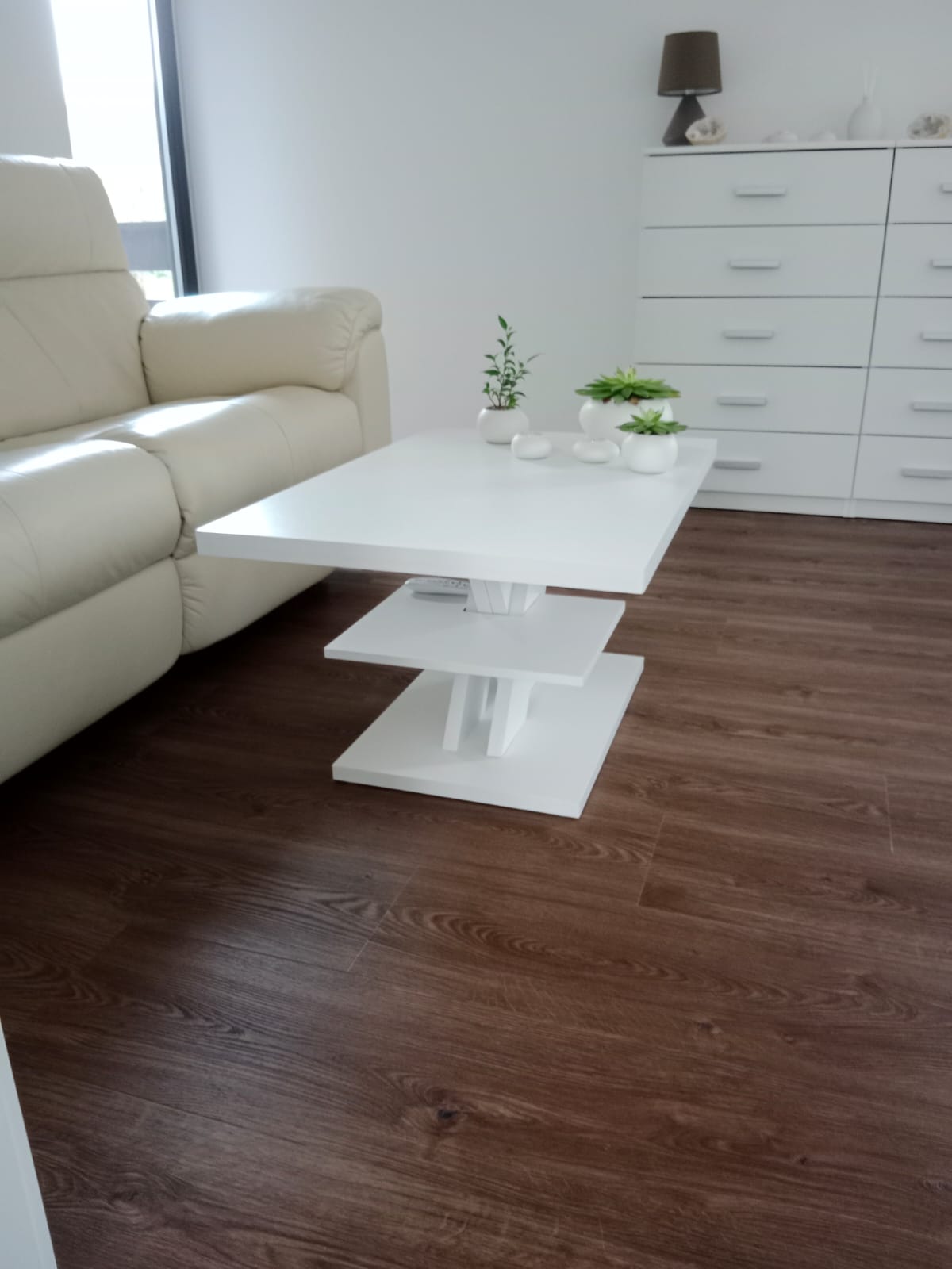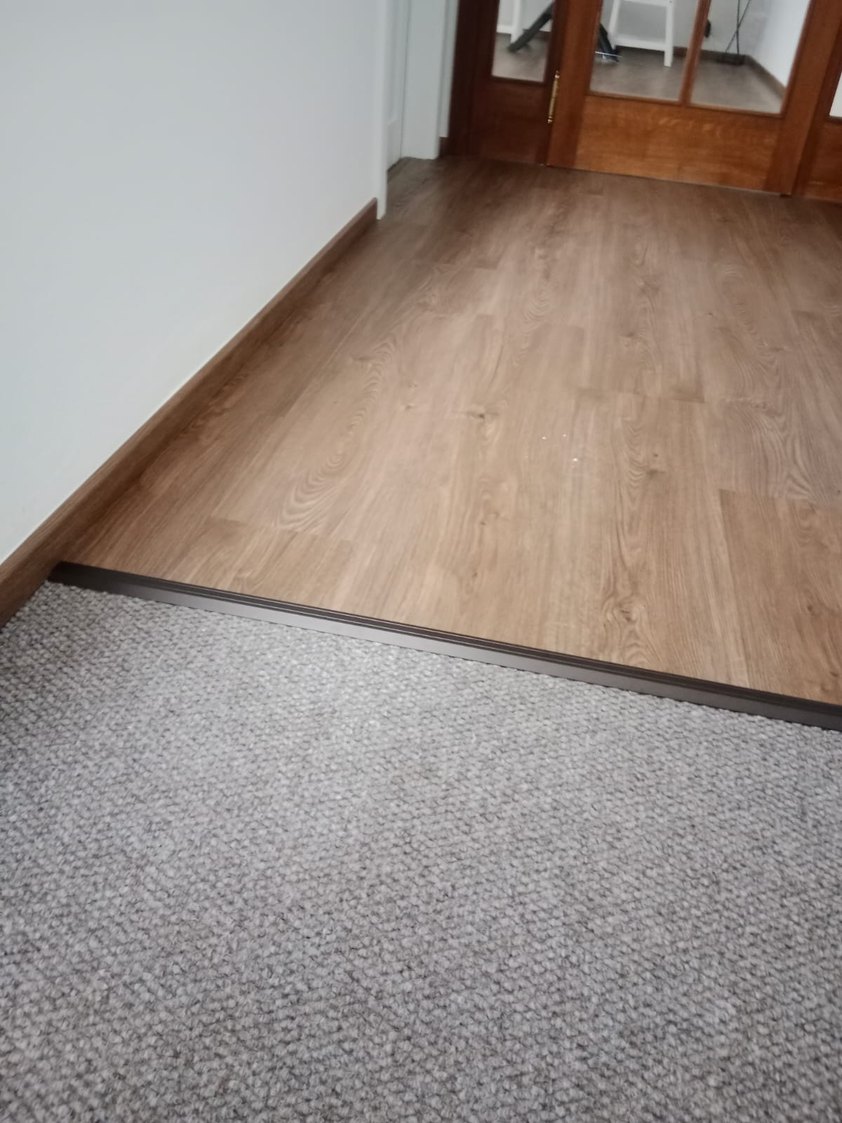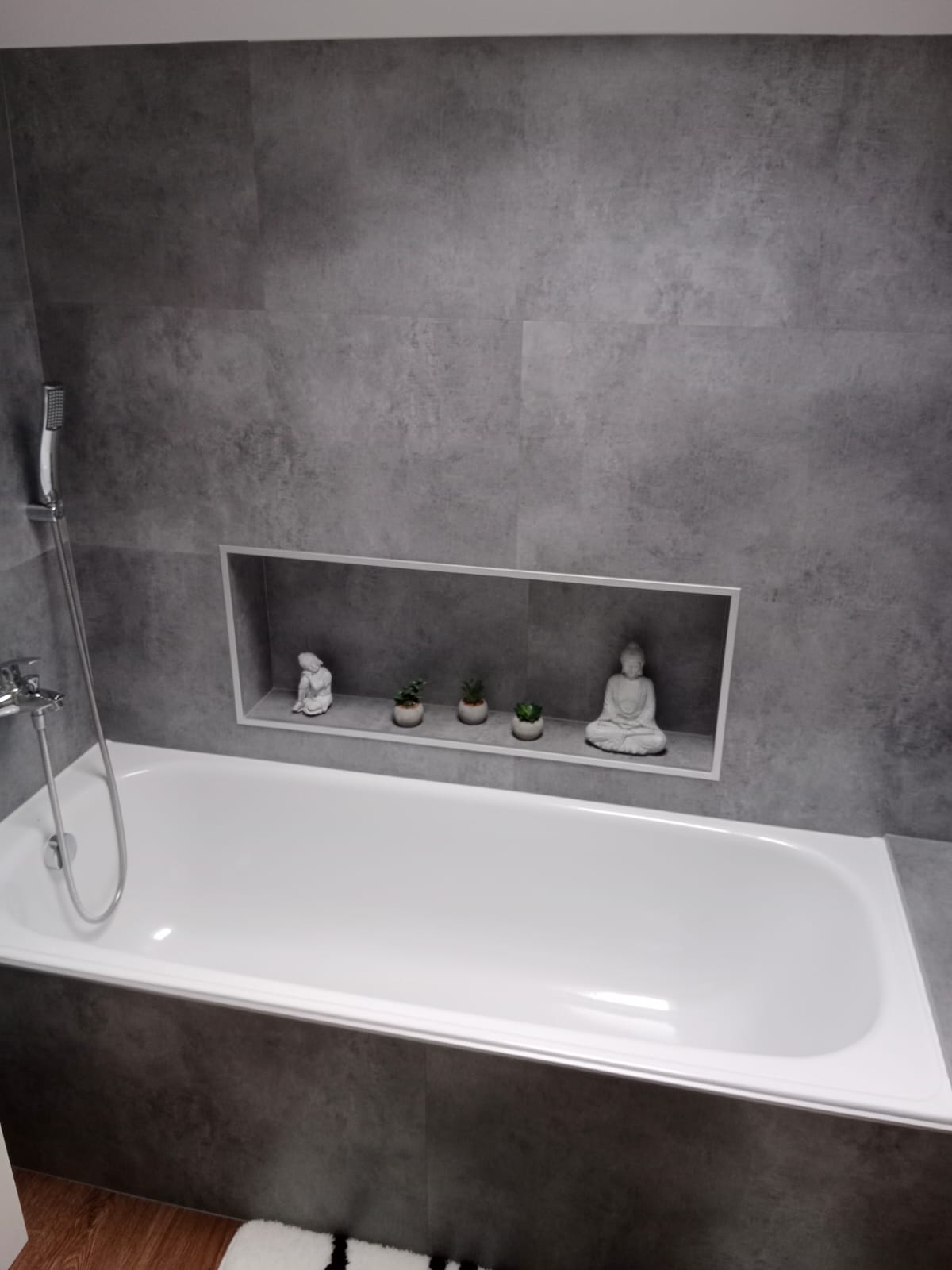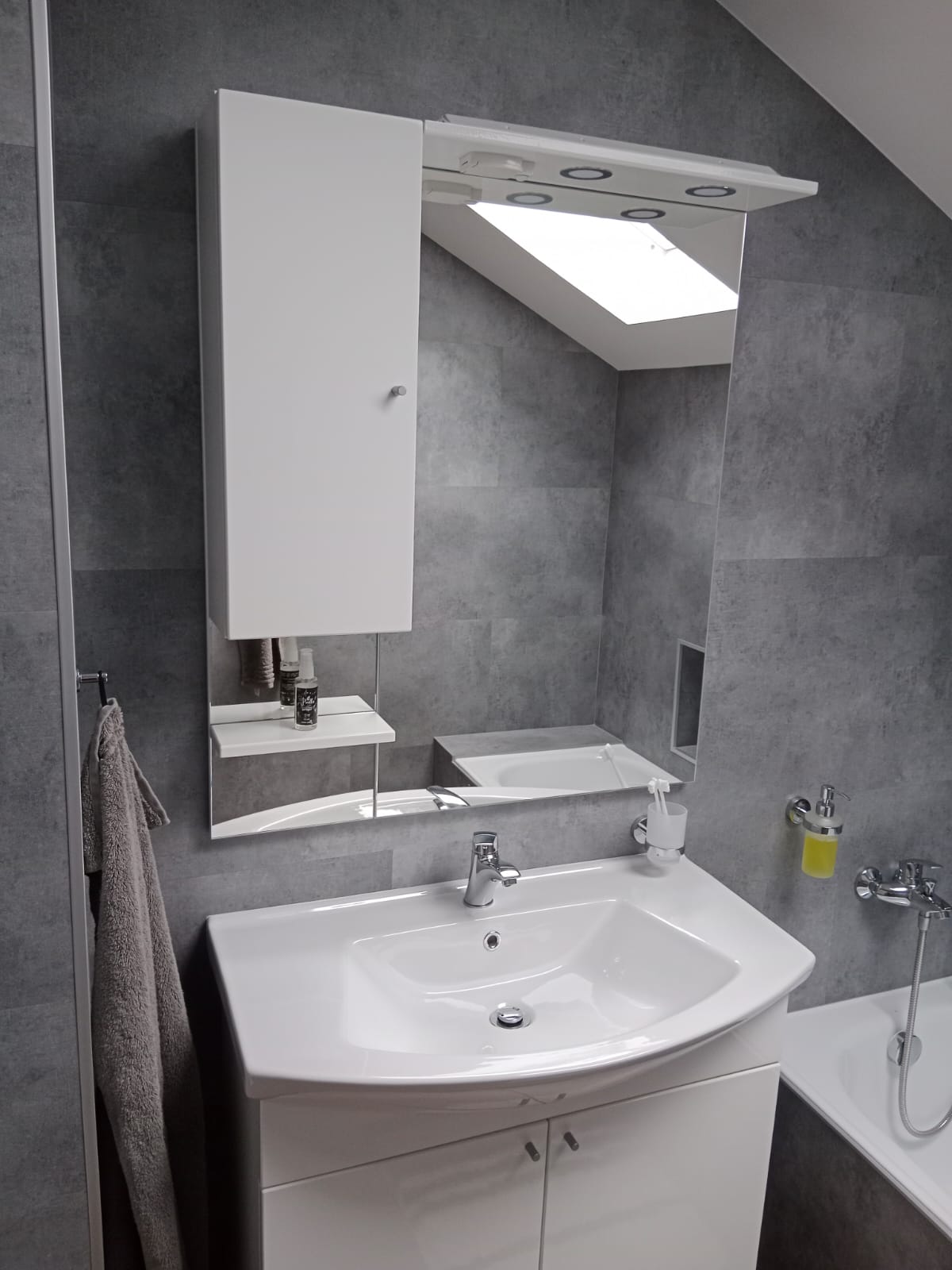V rodinném domě v Ledči nad Sázavou jsme se podíleli na proměně designu celého domu, pomohli jsme s podlahami, obkladem schodiště i koupelny s toaletou do vinylu BUKOMA. Zákazník si vybral podlahu v dekoru BUKOMA PREMIUM U‑CLICK Dub Všechovický, který přináší autentickou kresbu dubu a odolný povrch pro každodenní provoz. Schodiště je realizováno se schody s nosem pro bezpečný došlap a čisté linie. Zakončení stěn zajišťují soklové lišty BUKOMA PROFI‑60 v přesném dekoru podlahy, díky čemuž je prostor vizuálně kompaktní a působí jednotně. Pro obklady zdí v koupelně a toaletě pak byla zvolena vinylová podlaha v dekoru BUKOMA STONE U-CLICK XL Beton Kámen Šedý