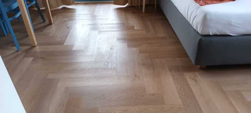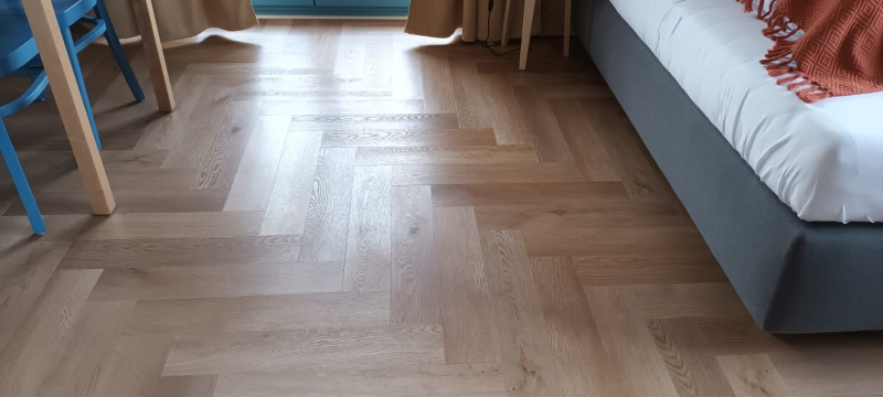 Ukázka realizace - pokládka podlah v hotelu Edvard, Frenštát pod Radhoštěm, všechny dodané vinylové podlahy BUKOMA HERRINGBONE U-CLICK dekor Dub Classic.
