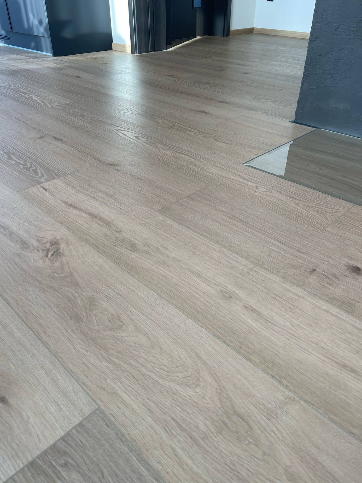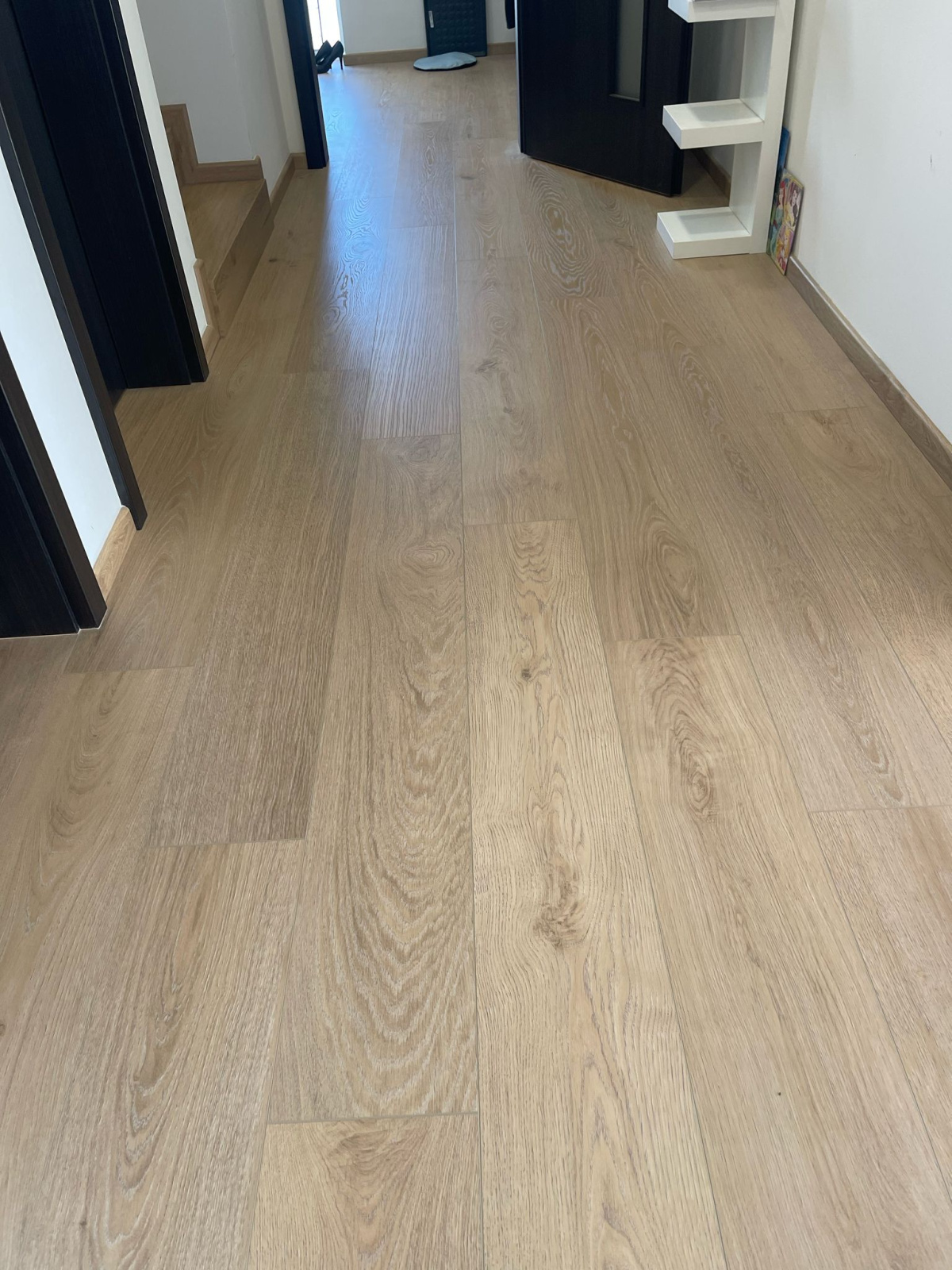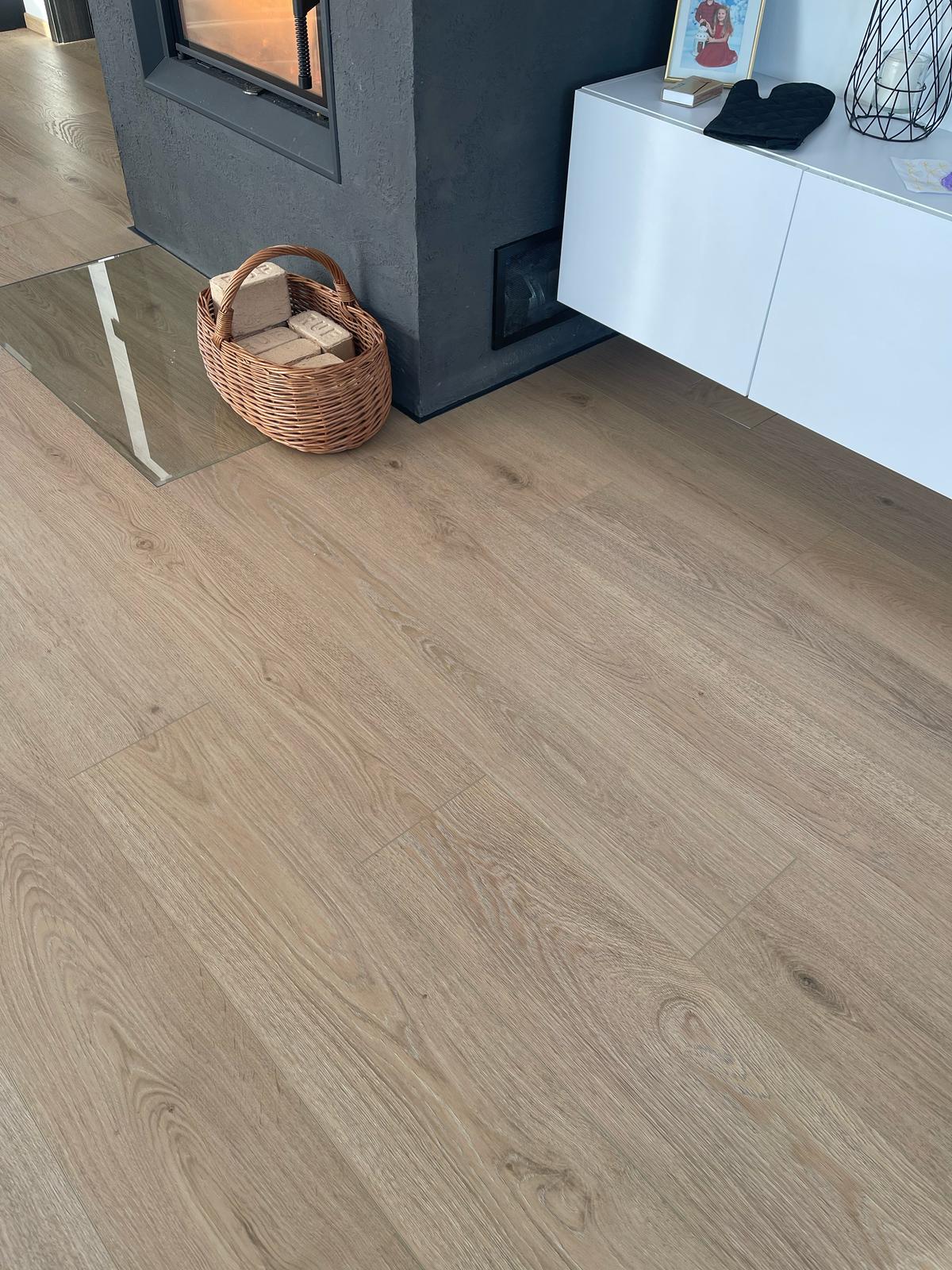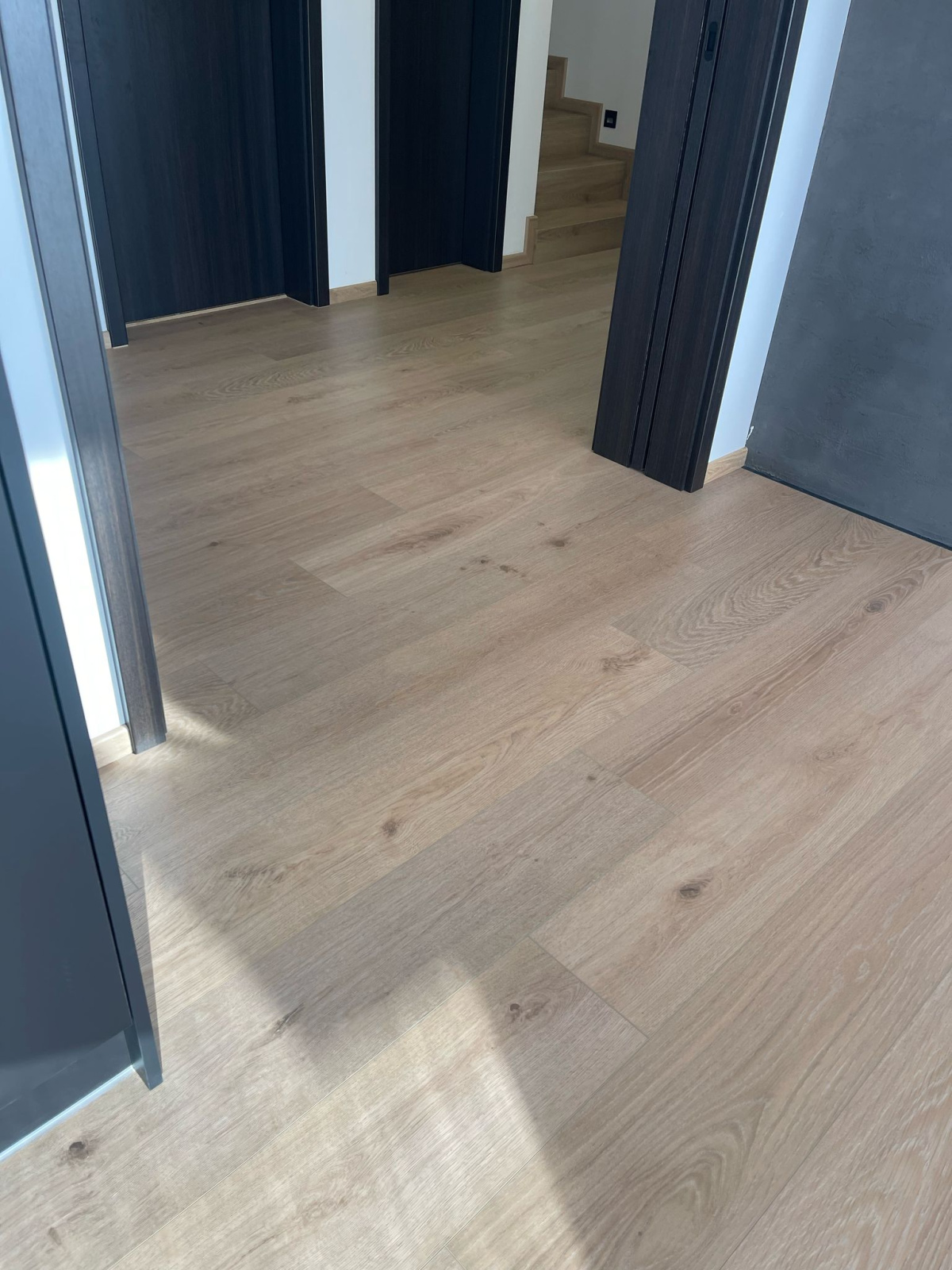 Podlahu jsme pokládali na celý obytný prostor, čímž jsme docílili sjednoceného a harmonického dojmu v celém interiéru. Tento typ vinylu je nejen esteticky atraktivní, ale také vysoce odolný vůči opotřebení, nenáročný na údržbu a vhodný pro domácnosti s dětmi nebo domácími mazlíčky.