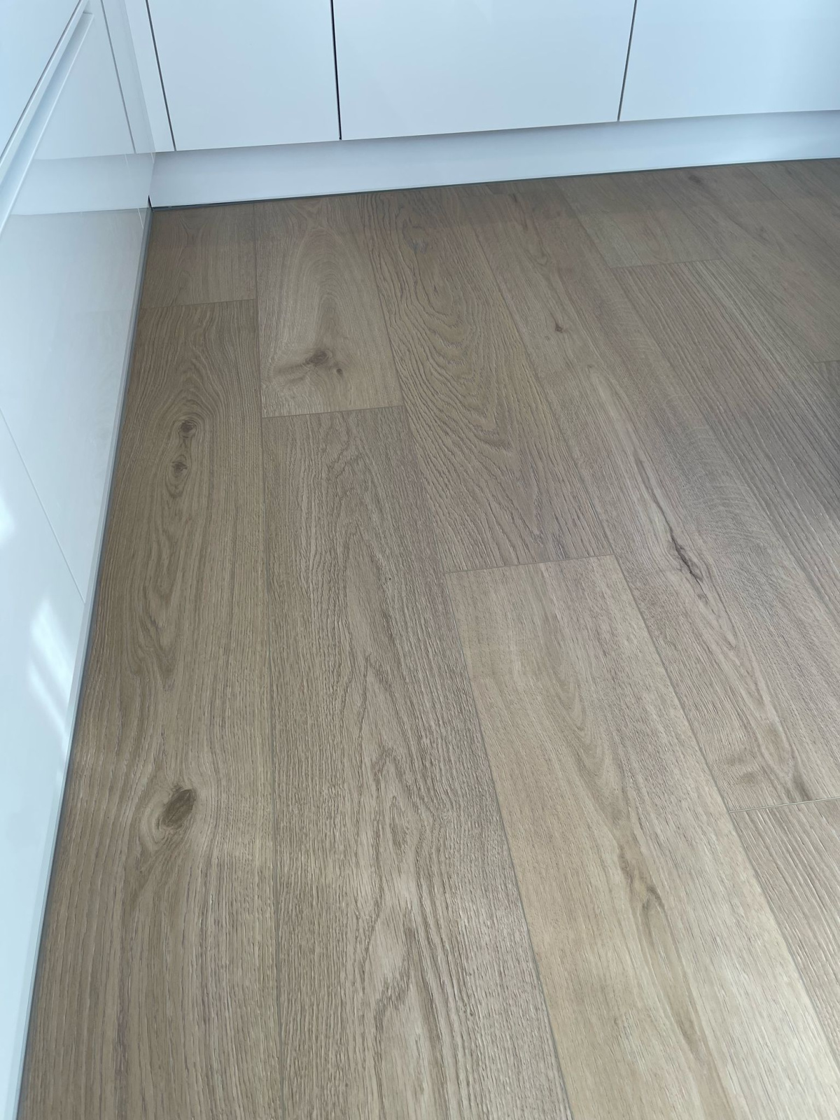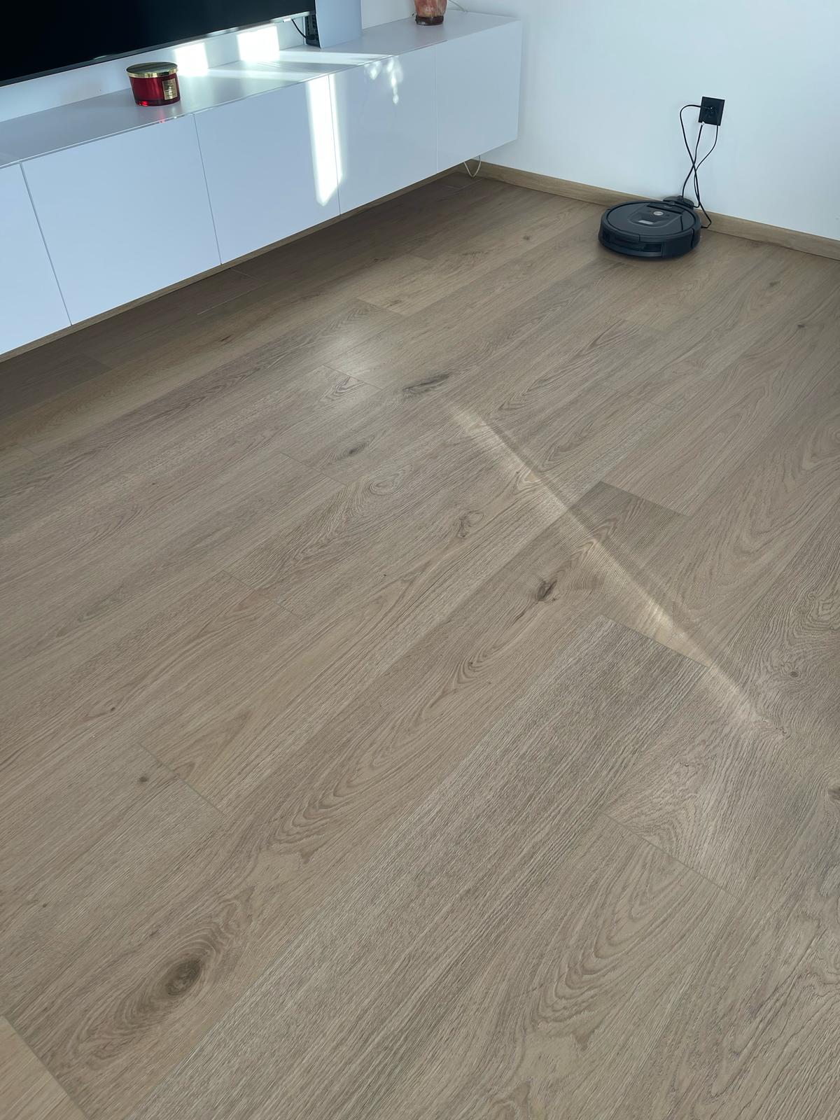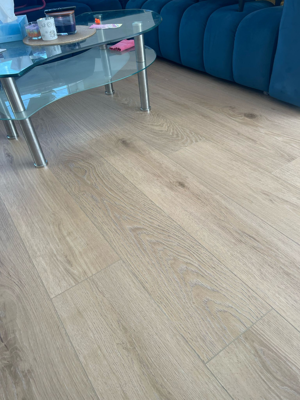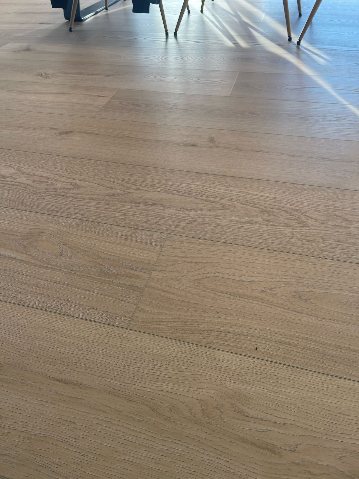 Podlahu jsme pokládali na celý obytný prostor, čímž jsme docílili sjednoceného a harmonického dojmu v celém interiéru. Tento typ vinylu je nejen esteticky atraktivní, ale také vysoce odolný vůči opotřebení, nenáročný na údržbu a vhodný pro domácnosti s dětmi nebo domácími mazlíčky.