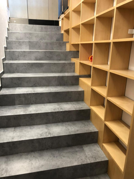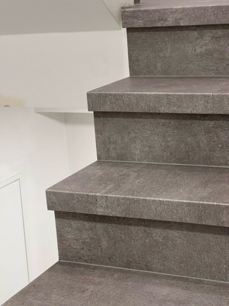 Ďalšie ukážky projektov s vinylovými schodmi s dekorom kameňa sú tu: