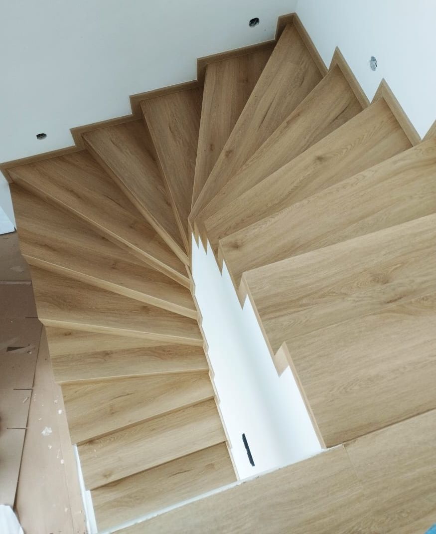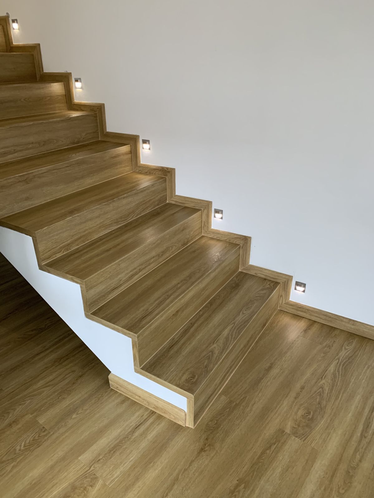 V tejto galérii nájdete ukážky realizácií vinylových schodov bez nosa realizovaných technológiou BUKOMA® . Tento typ obkladu vytvára čistý, moderný vzhľad a zvýrazňuje minimalistické línie interiéru.
