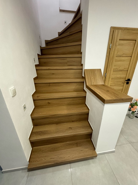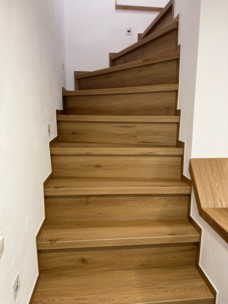 Představujeme vám další realizaci našich podlahářů z Bukomy – obklad schodiště vinylovou podlahou BUKOMA PREMIUM U-CLICK Dub Bunbury, tentokrát s variantou schodů s nosem. Realizace proběhla v Rychvaldu, kde jsme obnovili původní dřevěné schody, které byly v poměrně špatném stavu. Kromě estetické renovace se nám podařilo upravit i výšky jednotlivých schodů, což zajistilo rovnoměrnost a pohodlí při jejich používání.