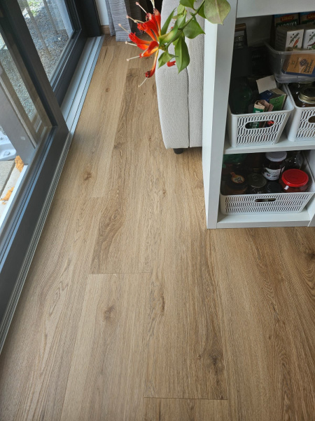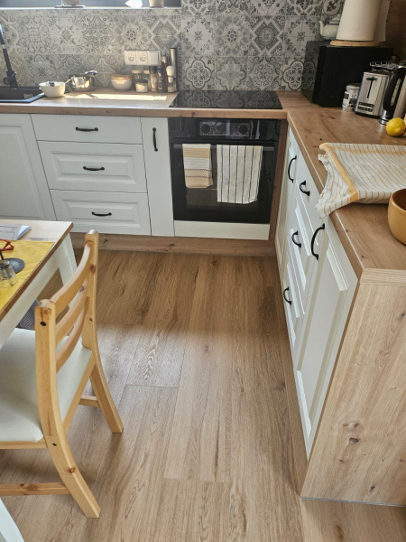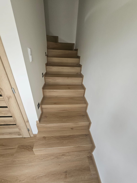 Představujeme další příklad kvalitní práce podlahářů z Bukomy – obklad schodiště vinylovou podlahou BUKOMA PREMIUM UCLICK XL Dub Natur,, Tato realizace proběhla v Praze a vyznačuje se elegantním provedením bez nosu schodů, které dodává schodišti moderní, čisté linie. Dekor Dub Natur nabízí příjemný, přirozený vzhled dřeva, který harmonicky zapadá do různých stylů interiérů, od moderního až po klasický.