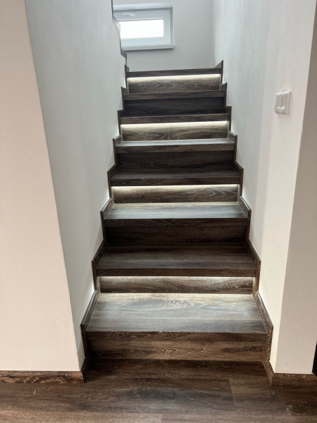 Ďalšie ukážky projektov s vinylovými schodmi s LED osvetlením sú tu: